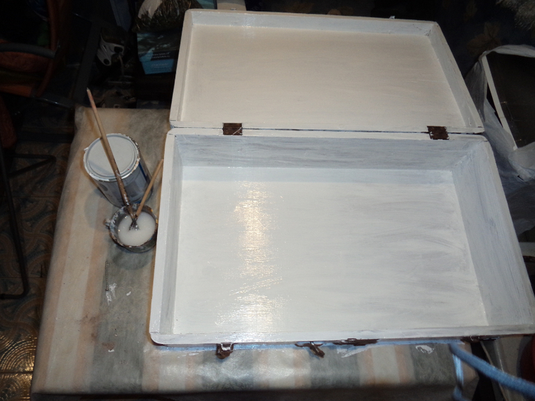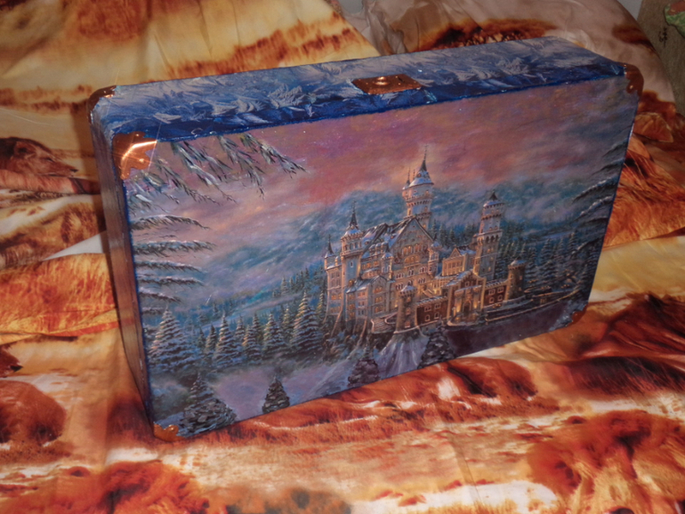 7. Теперь с помощью лака ... (как то я приспособилась им тоже клеить) приклеила истонченную распечатку на чемодан