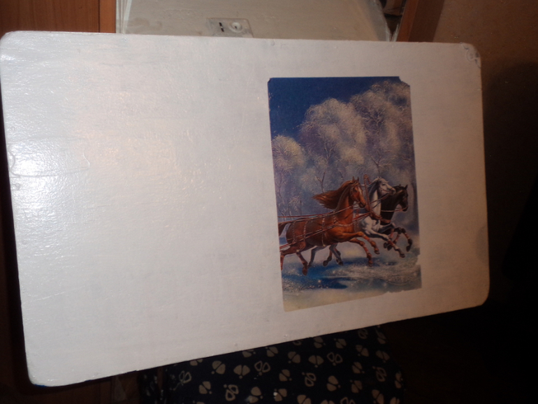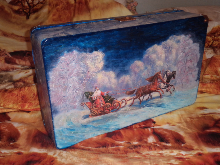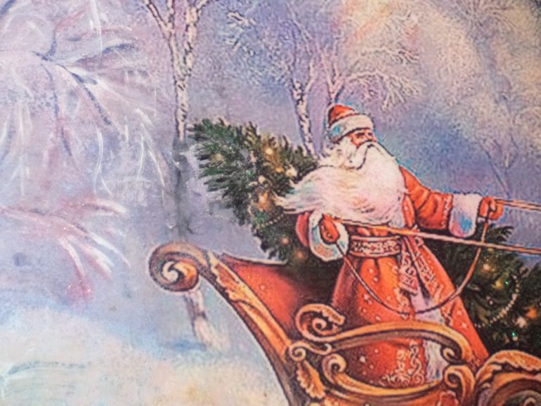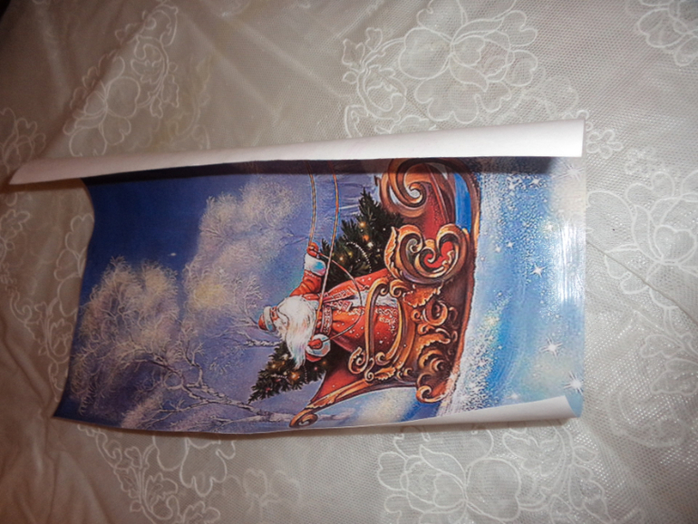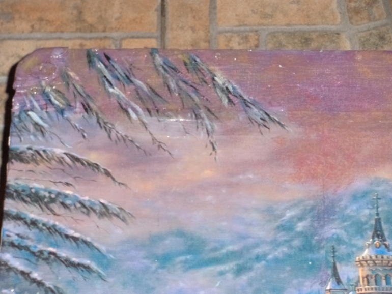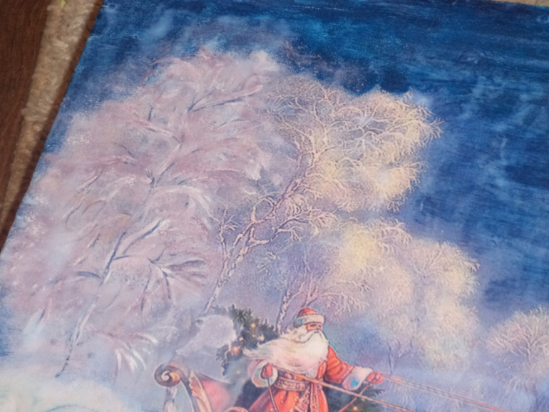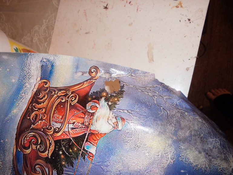 Бывали и такие ЛЯПЫ (на елку Деда Мороза обратите внимание .....) нету елки ... от елки ДЫРКА.... это я слой лака лишний раз положить поленилась .... Но это не беда. Этот ляп можно исправить (покажу позже как)