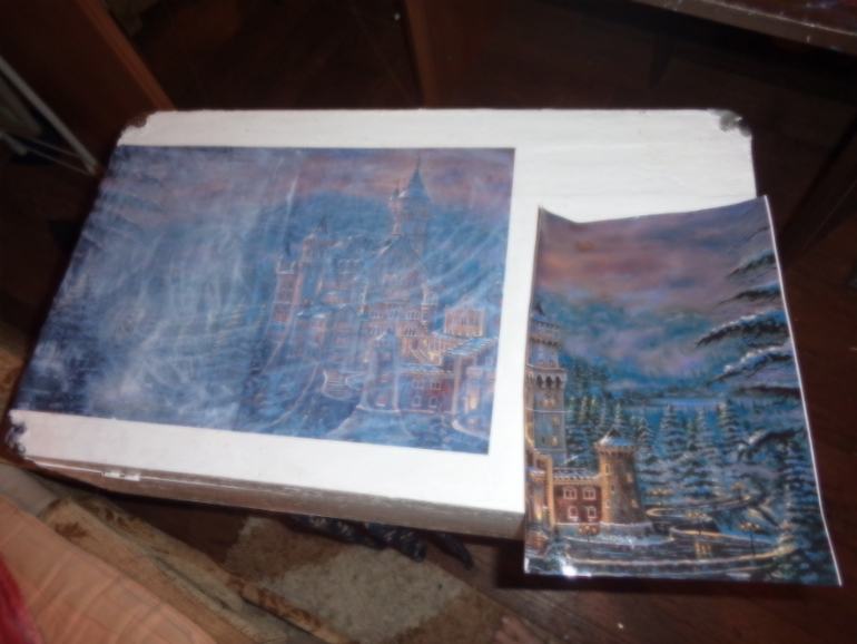 4. Выбрала картинку и в фотошопе распечатала ее на 3 листах (замок) и на двух листах (деда Мороза)