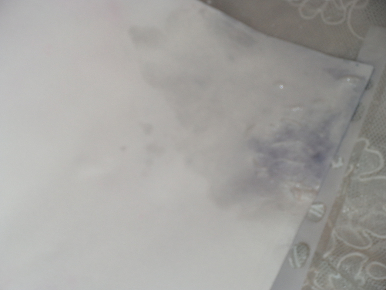 6. Теперь нужно истончить. Я как то приспособилась к такому методу: Кладу распетку на файлик "лицом" вниз и наливаю на нее воды, не очень много.