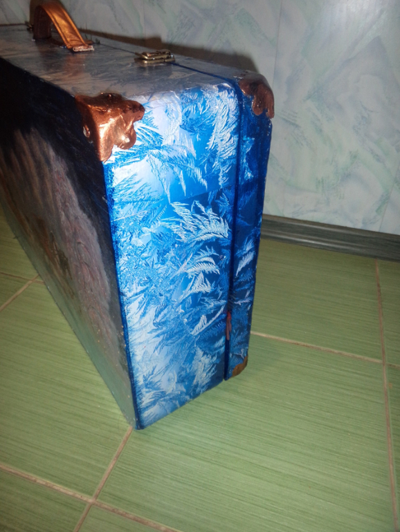 Надо было сначала края чемодана прокрасить ... но было поздно ... и потом пришлось аккуратно подкрашивать синим кисточкой