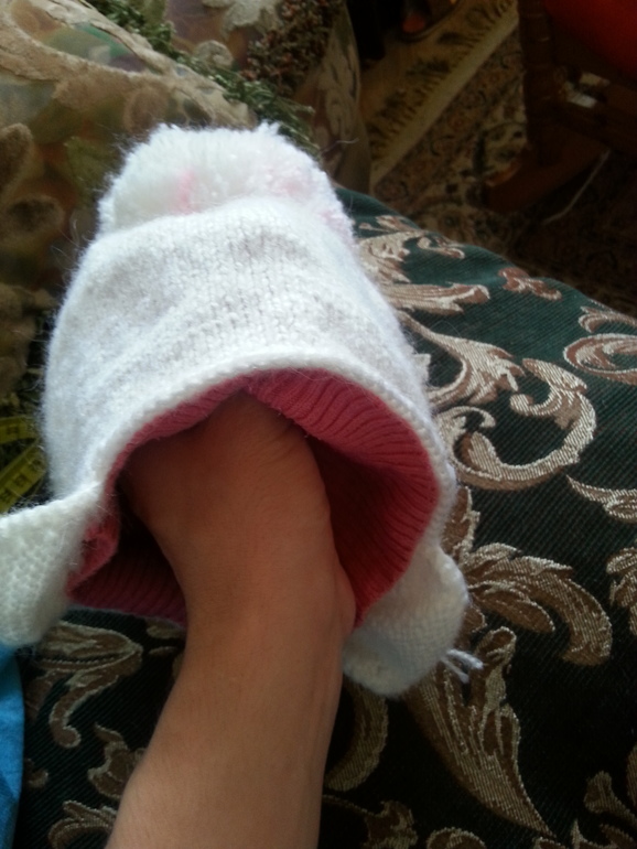 Теперь вяжем ушки. Втыкаем спицы в петли в те места где должны быть ушки и вяжем убирая петли. Чтоб они стали треугольными.Затем всю шапку обвязываем снизу и ушки крючком, чтоб она сильно не тянулась и вообще красиво смотрелась.Потом берем теплую ткань и делаем подкладку также прямоугольник сшиваем по бокам и сверху и вручную пришиваем незаметным швом к шапке