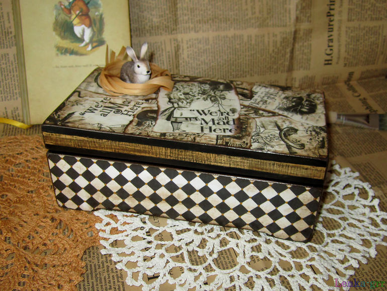 Шкатулочка для чайных пакетиков Панно, домик и бутылочка.