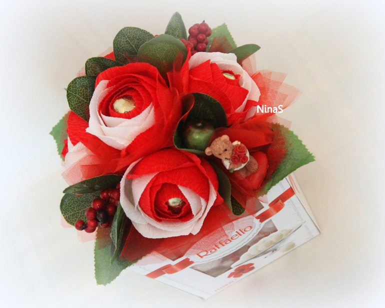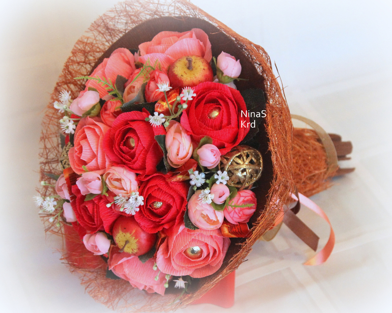 Нинуля!С годом творческих успехов,сколько я помню твои работы-они всегда красивые,аккуратные, с изюминкой,я честно не помню твоих первых корявых букетов(как у многих),твои работы всегда были на высоте (хотя в посте можно было и выложить первую работу для сравнения:)). Аллергии не надо,а то как же без букетов,кто подсел,мне кажется-это надолго!Успехов в творчестве и счастья в семейной жизни!