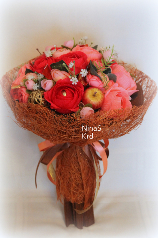 Люблю такие оттенки) Сизаль вот прикупила. Огорчает лишь, появившаяся на него аллергия. Вот не знаю чем это для меня закончится или отказом от сизаля или от букетов((( не только на него реагирую((