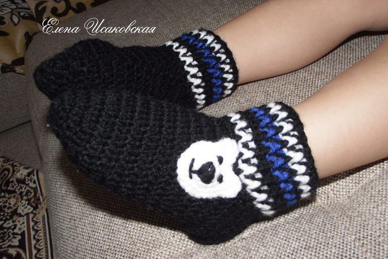 Связала носочки крючком для своей дочи, очень понравилось их вязать, вот что получилось, из остатков пряжи, так что расцветки не очень)))