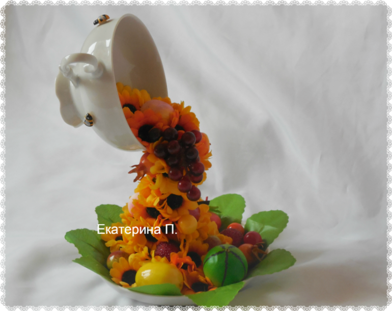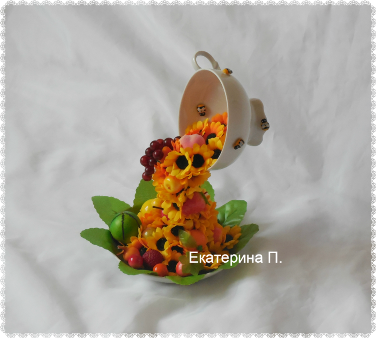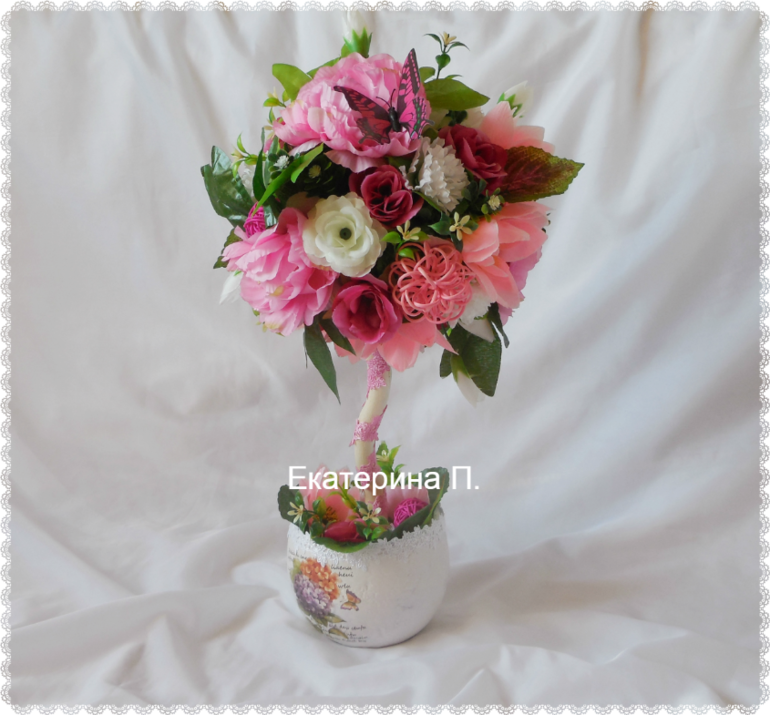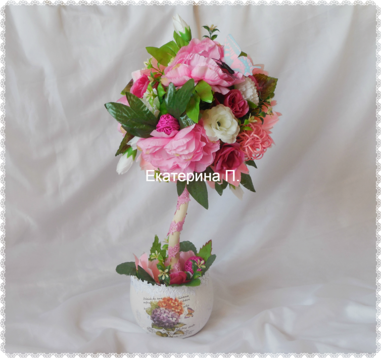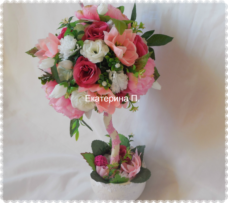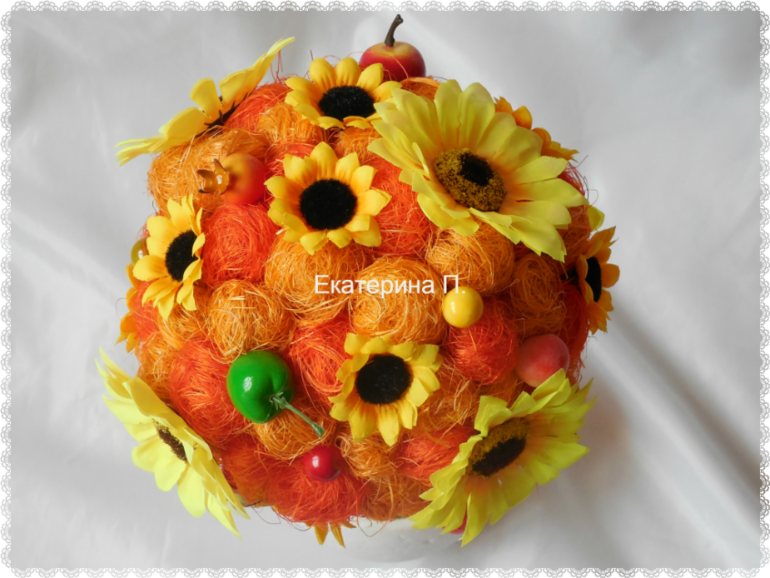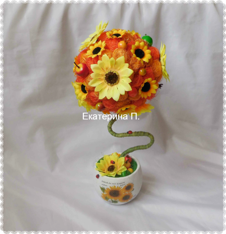 А вот Катерина и попалась — изменяет конфетным букетам с топиариями! Красота! У тебя здесь представлены все времена года — осень (подсолнухи), зима (в морском стиле) и весна — все остальные! Катя, какая же ты умница!
