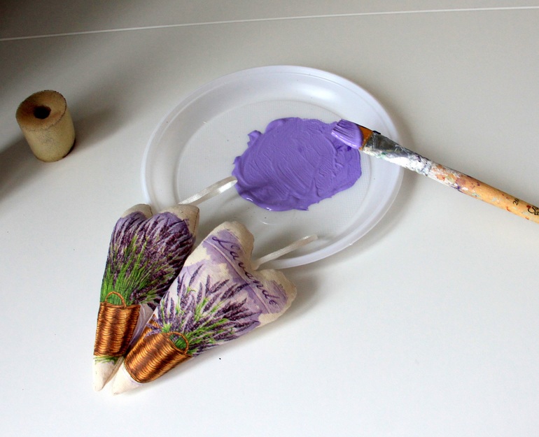 Сушеные сердечки мне не очень нравятся, у них совсем незаконченный вид. Поэтому я развожу немного акриловой краски в тарелочке