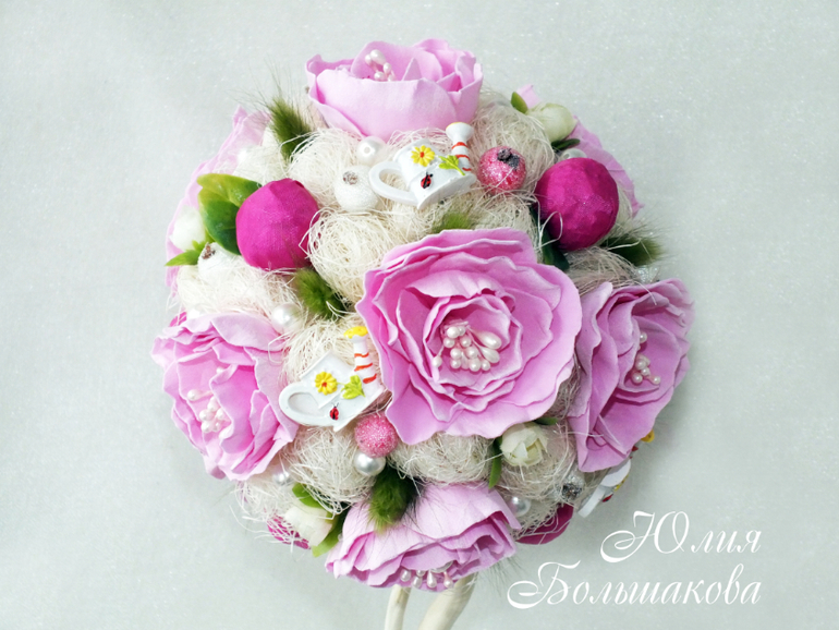 Ага, а вот и розочки, над которыми наша Юляша мучилась. Очень красиво! Не зря ты столько материала извела! Шикарные топиарии!