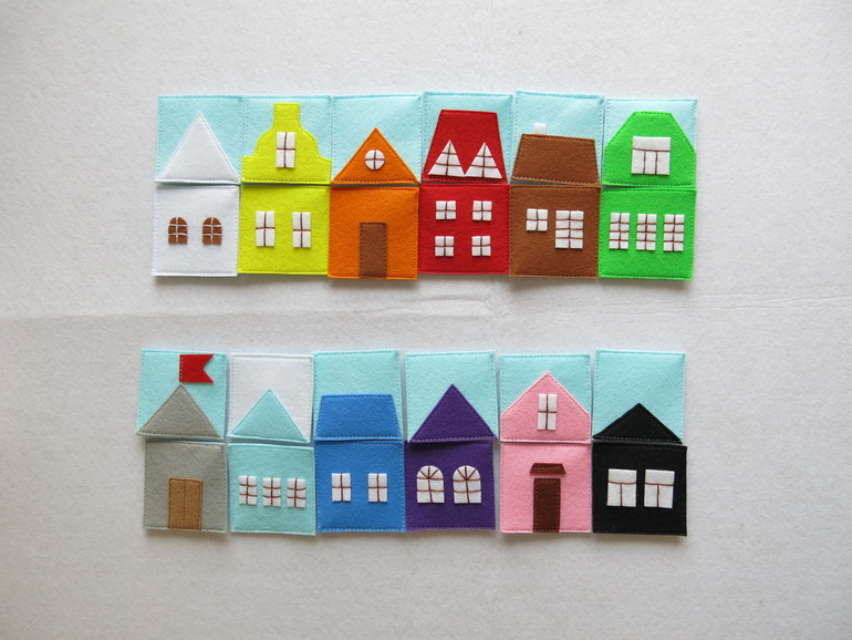 Попросила меня заказчица сделать мои Цветные домики немного по-другому - 24 карточки: 12 цветов, каждый домик состоит всего из 2 квадратиков и без лишних деталей (без солнышка, облачка...). Вот что получилось: