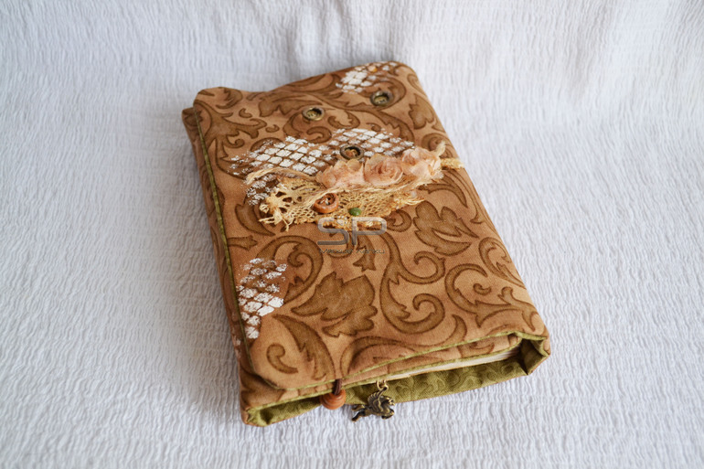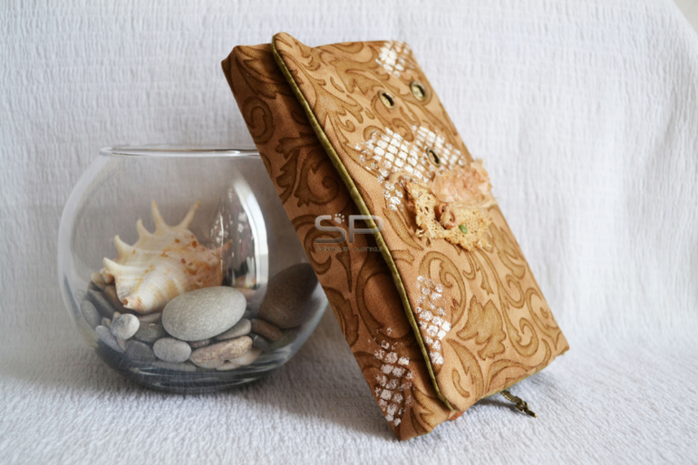 Формат А6. Софтик выполнен из хлопка, тонированной кофе, бумаги для письма, 240 стр., штампики по желанию, пока листочки чистые. Внутри обложки вшит мешочек с корицей и мятой. Сверху обложка декорирована хлопковым кружевом, деревянными бусинами и тонированными розами, сквозные люверсы открывают скрытый текст.