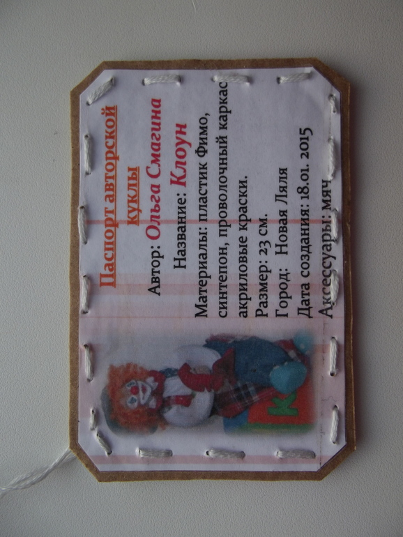 А это паспорт, который прилагается... Делала впервые, поэтому получился большоватый и немного грубоватый, но зато - ПАСПОРТ!