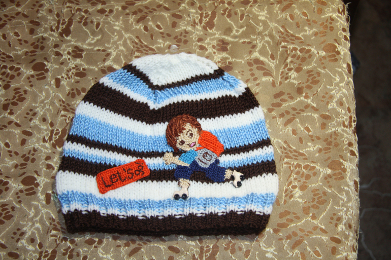может, перешью. сейчас в раздумьях, что Саньку на такую же шапку приделать?))) я же 2 связала, идентичные. но там возраст другой. посоветуй, а?