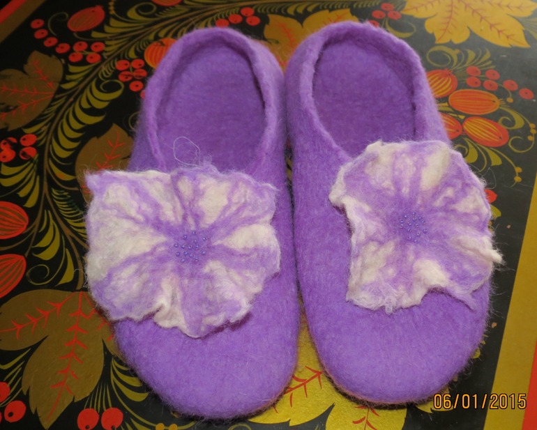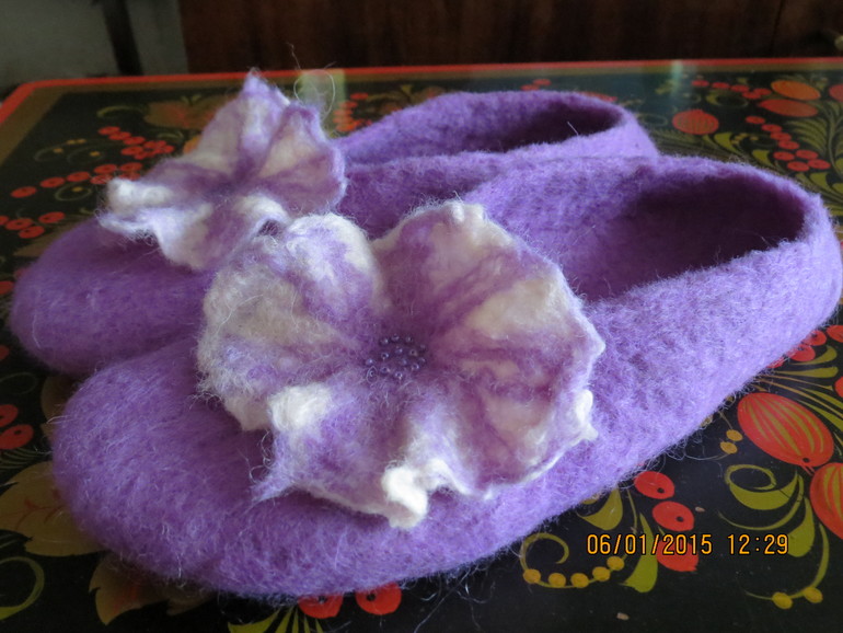 Фелтинг (валяние шерсти)Долго собиралась и вот спустя два года у меня сотворились вторые тапочки.Критика и советы приветствуются.