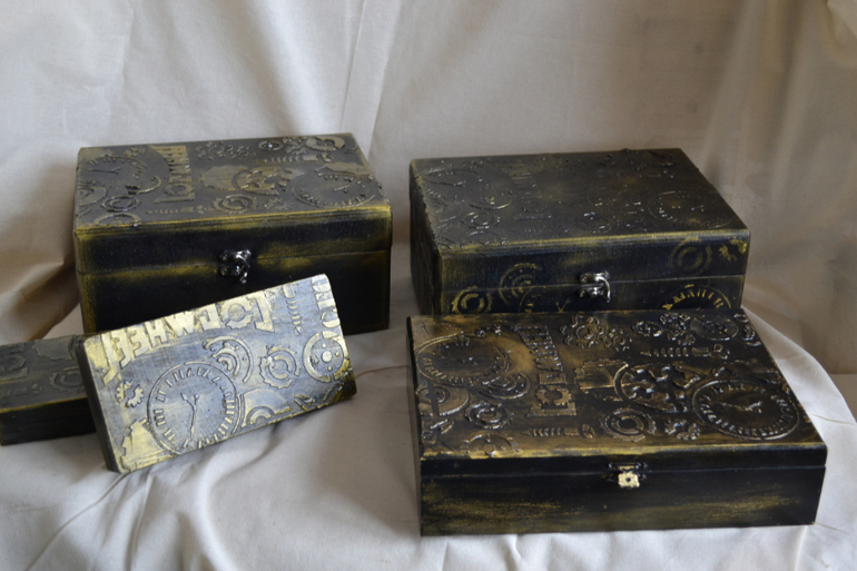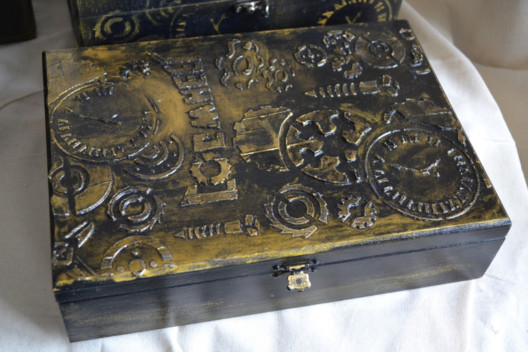 Трафарет суперский! Я думала ты реальные шестереночки крепила! Классные шкатулочки!
