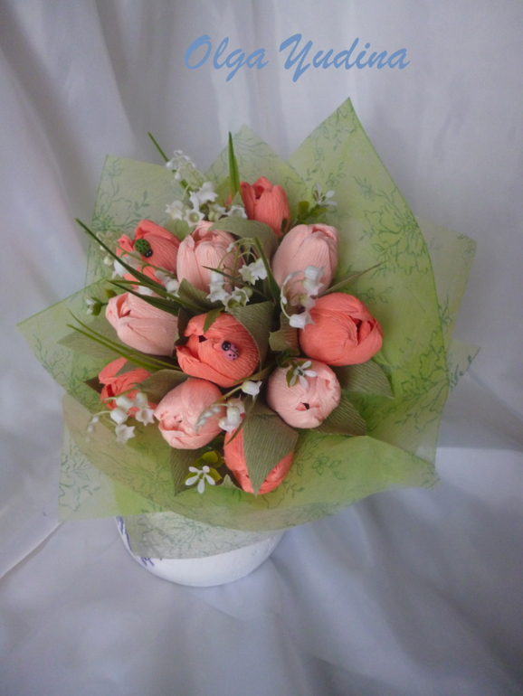 Две небольшие корзиночки по 11 цветочков,весенние,и одна чуть побольше: