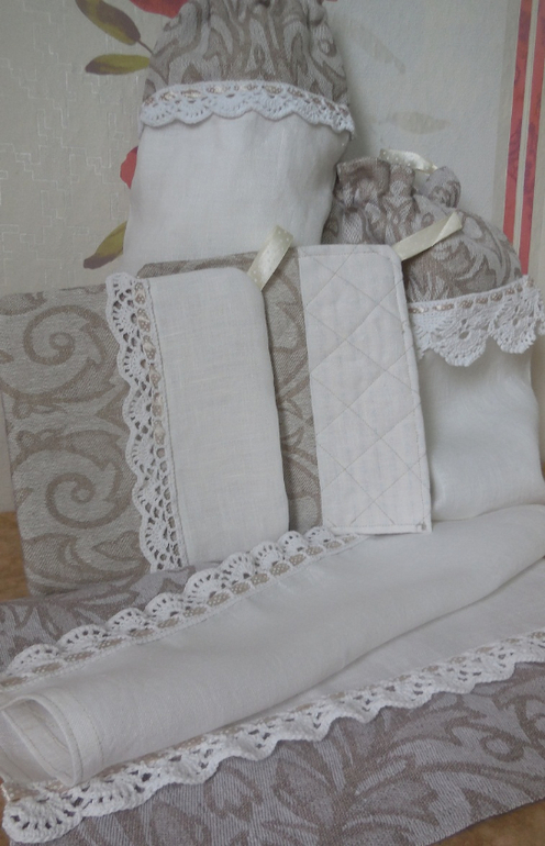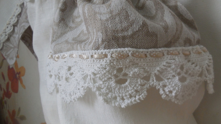 Добрый день! Может быть в работе обвязка окажется немного проще, если кружево тонкое будет можно и обвязать, а вот если широкое, то я считаю так как лучше пришить, все таки на скатерти можно сделать пятно и жалко выбросить вместе с кружевом, а так можно отшить и сменить ткань. Просто если тонкое, его не так жалко, а когда широкое уже будет печалька. Буду пришивать на лен, выполню евро-подгибку и и на машинки пришью кружево.