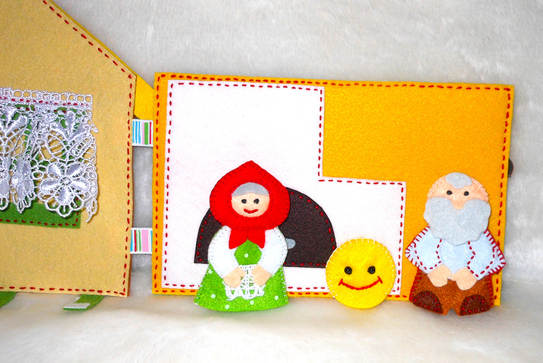 Работа супер!!!! Главное,что много сказок и очень компактно можно их сложить. Я своей дочке хочу что-то подобное сделать. Можно узнать какой фетр и какой толщины вы использовали на игрушки и на домик.