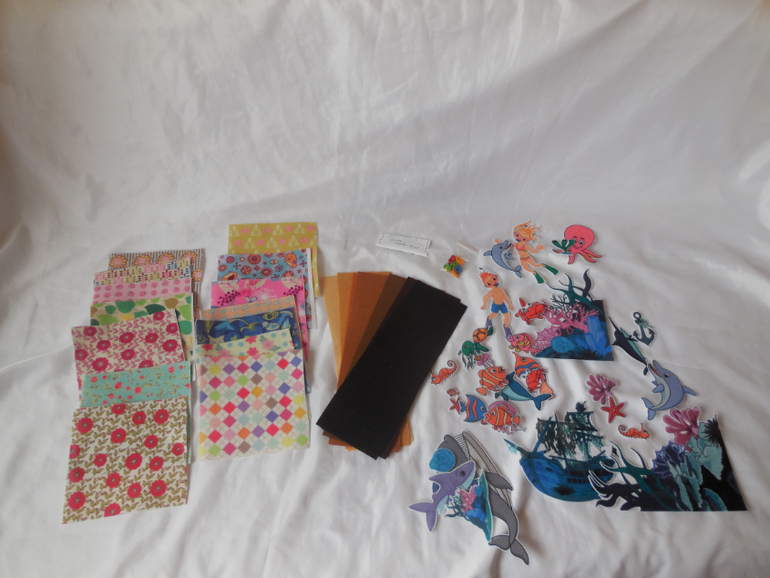 А для моего хомяка были целые богатства! Особенно поразил фетр с рисунком!!! Я такого красивого еще не видела... а какой мягкий!!! А вырубка с морскими обитателями!!! Маленькие ручонки так и норовили что-нибудь стащить, пока я фотографировала )))