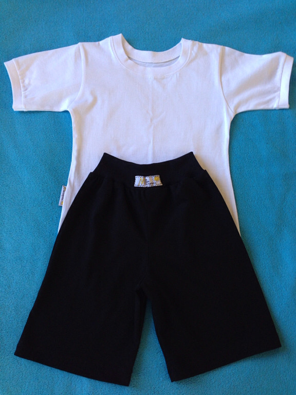 В общем то ничего особенного. Футболки из кулирки белой, шорты из черной, отделка кашкорсе