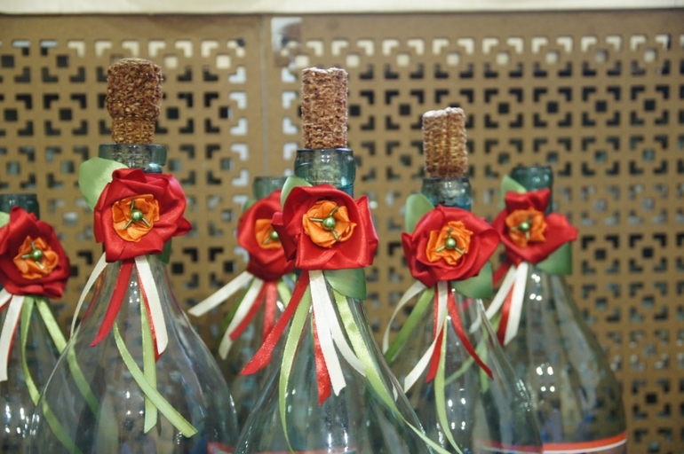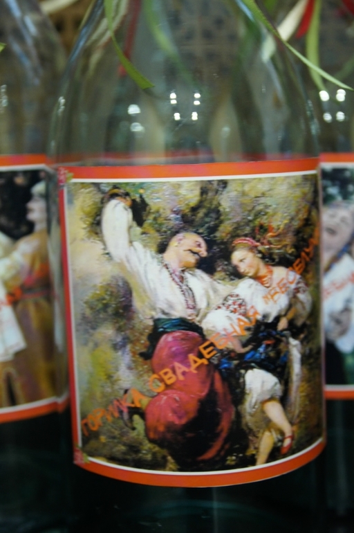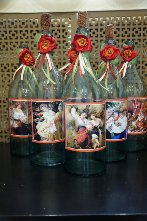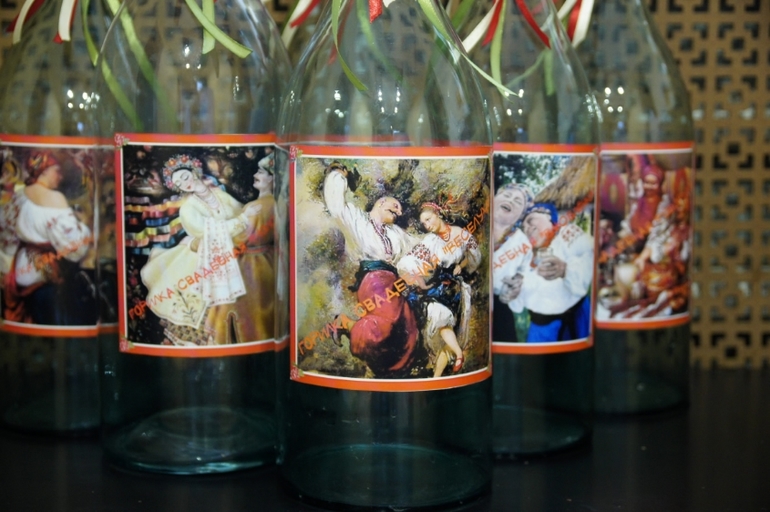 Т.к. свадьба кубанская, на столе будут стоять вот такие бутыли, видимо с водкой или каким-то другим горечительным напитком.