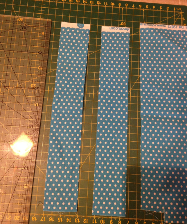 Делаем окантовку. Можно из одного кусочка, тут и надо-то немного, но у меня совсем маленький кусочек оставался. Заодно и покажу как сшивать полоску из кусочков.