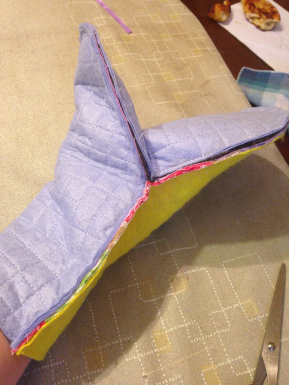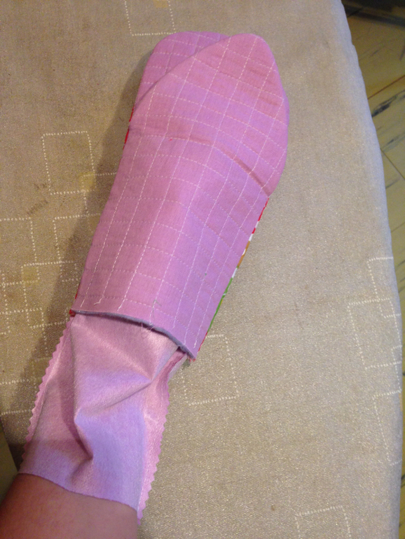 Верх выворачиваем, утюжим. Делаем очень аккуратно надсечки там, где палец, не очень глубокие!! подклад я обрезала по периметру зиг- загом, а верх не стала, и так все хорошо вывернулось.. припуски у меня 6 мм.