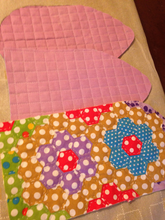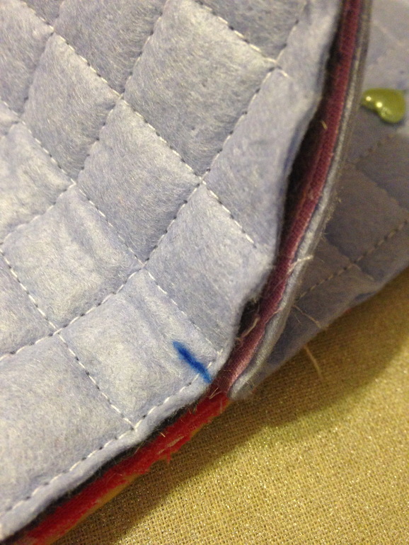 Подклад. Поскольку верх уплотнен и простеган (а от стежки детали слегка уменьшаются), готовые детали подклада я уменьшила на 3 мм.. ну просто ножницами срезала вот так.. верх не укорачивала