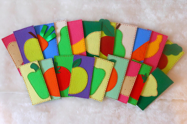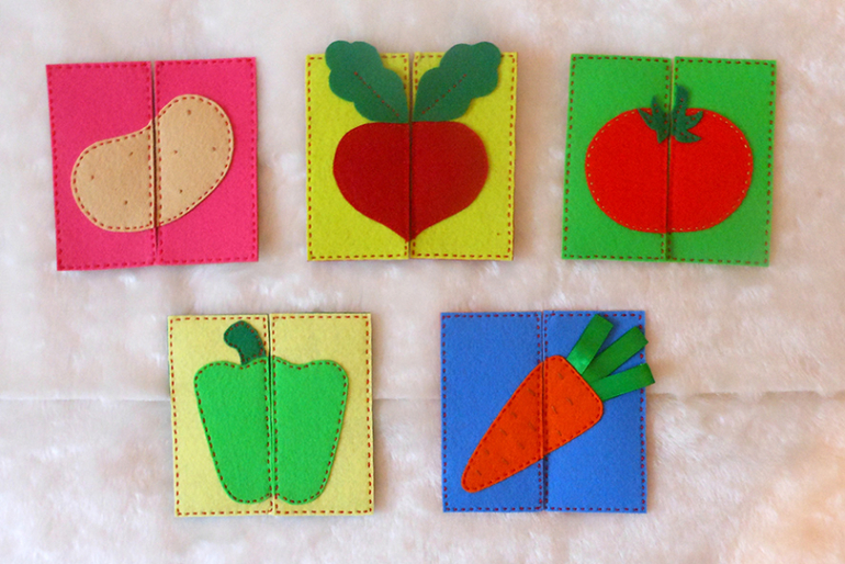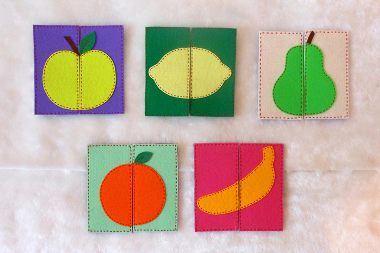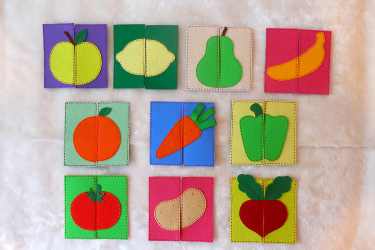 Хочу показать пазлы для малышей - простые и яркие картинки, разрезанные пополам. Выполнены из жесткого корейского фетра полностью вручную. С помощью этих замечательных картинок можно выучить с малышами фрукты и овощи. С обратной стороны пазлы цветные, можно собирать картинки еще и по цветам (и тоже их учить и запоминать). Приятного просмотра)))