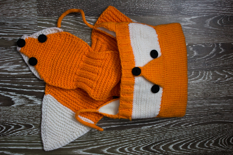 Тоже зимний комплект, шапка, шарф и варежки Лисичка, пряжа Пехорка Детский каприз в 2 сложения, в шапке подклад из флиса:
