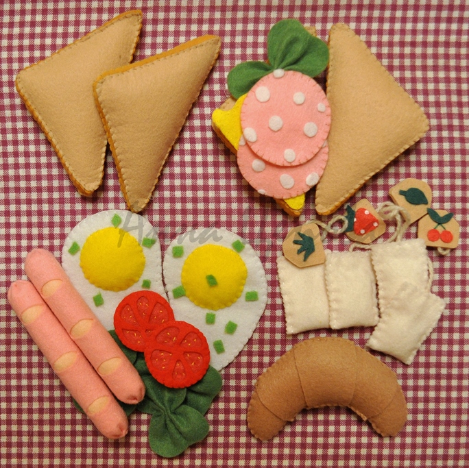 Решила я к двухлетию дочи сшить ей большой набор еды, а то кормит своих кукол-игрушек чем попало) Начала я, конечно, с завтрака.