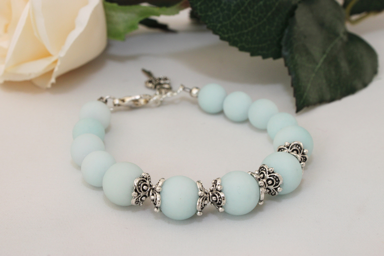 9. Браслет "Мятный" Фурнитура под серебро, агат. Размер регулируется от 15 до 18см