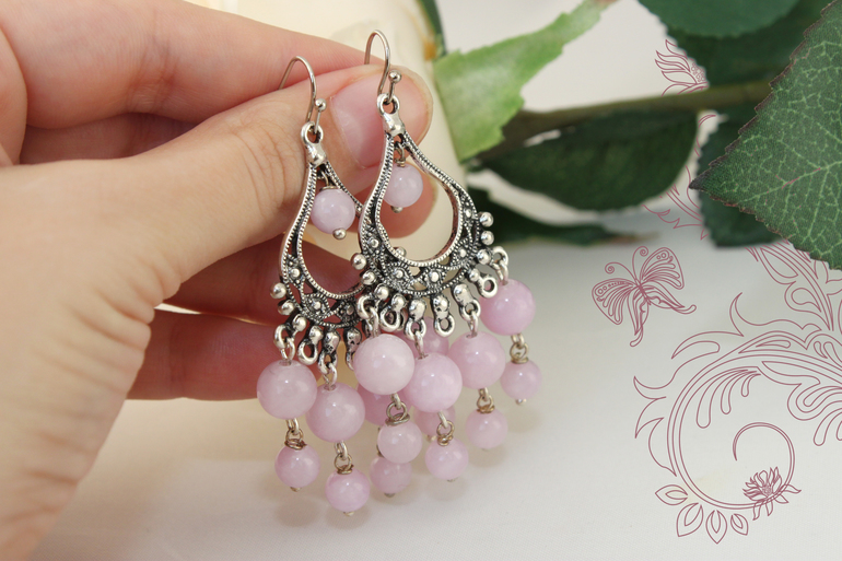 12. Серьги "Нежность" Фурнитура под серебро, тонированный нефрит