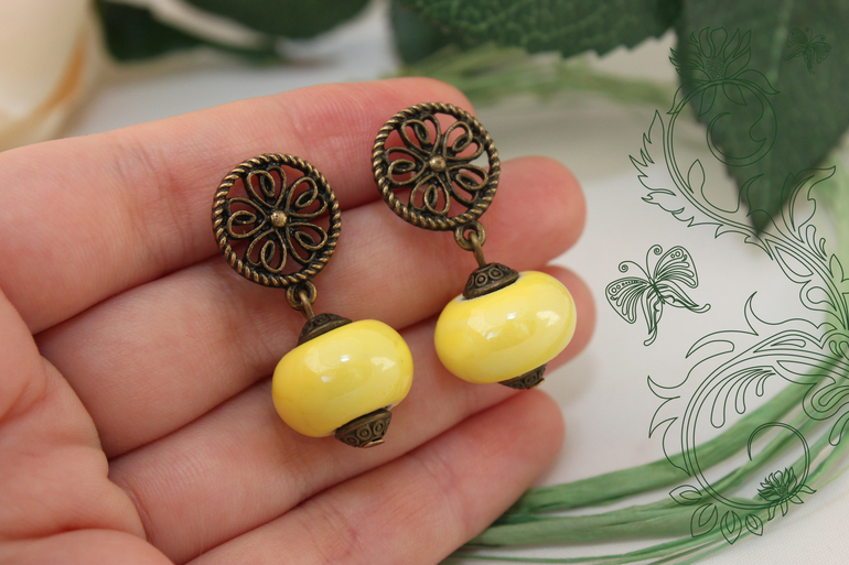 11. Серьги "Солнечные" Фурнитура под бронзу, керамические бусины