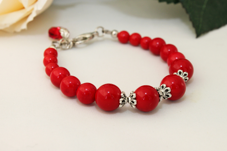 10. Браслет "С любовью" Фурнитура под серебро, коралл пресс. Размер регулируется от 15 до18 см
