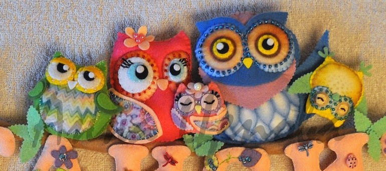 Я теперь не "сапожник без сапог" - сшила доче совушек) увидела рисуннок Анны Кай и не смогла устоять))) Когда сшила, поняла, что они вроде неплохо сочетаются, с гирляндой, которую шила год назад для дочи - перешила и получился вот такой апгрейд)