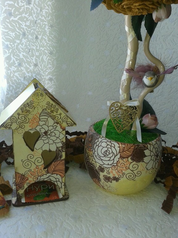 Симпатяшки, горшочки прям все под крону подогнала, а топиарий с домиком в паре смотрятся отлично!