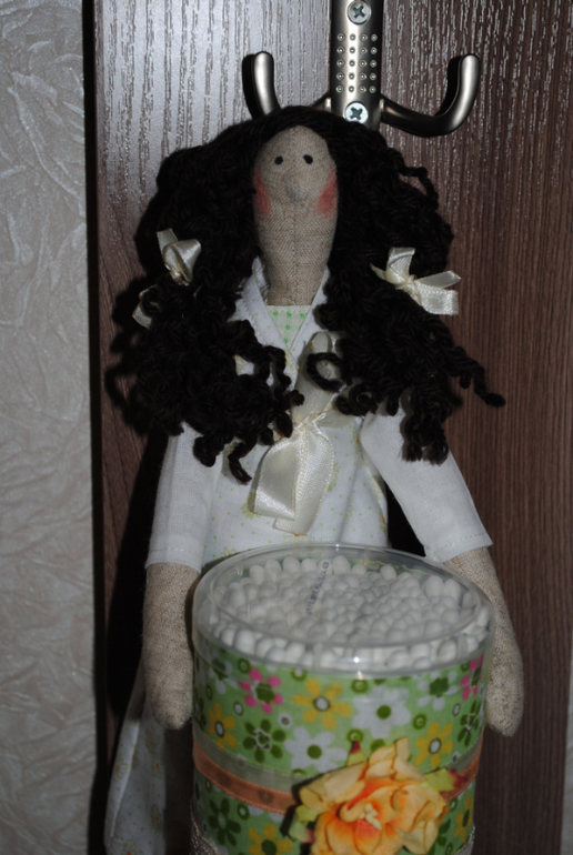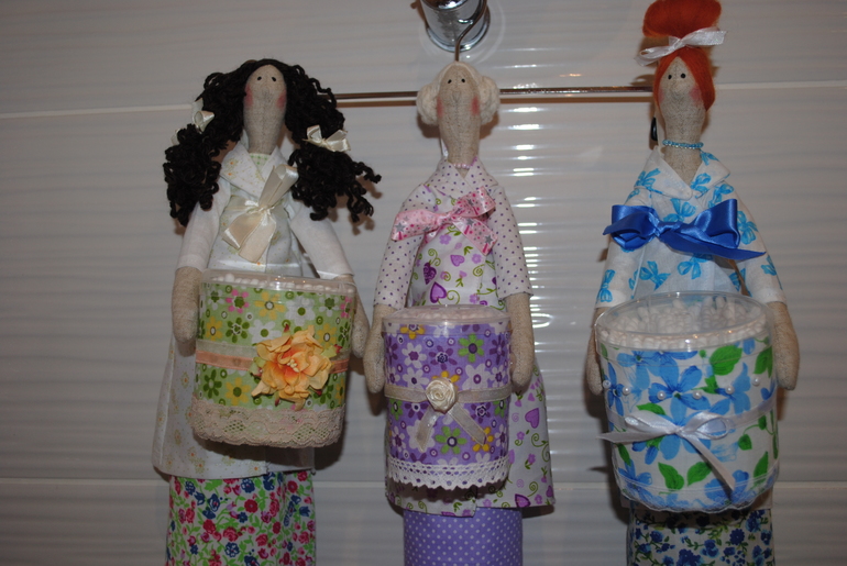 Вот такие сшились у меня хранительницы ватных дисков и палочек - брюнетка(Мария0, блондинка(София) и рыжая(Сюзанна). Прямо группа "Виагра"