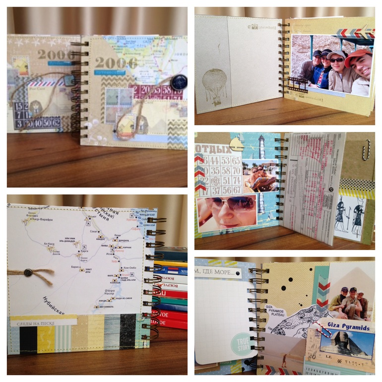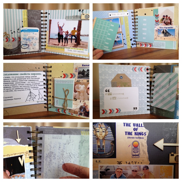 Использовала: скрап бумага, пленки, деревянные украшения, скотч, самодельные кармашки для билетов и местной валюты, конверт из кальки ( хенд мейд) , брадс, штампы. Крепление на пружине.