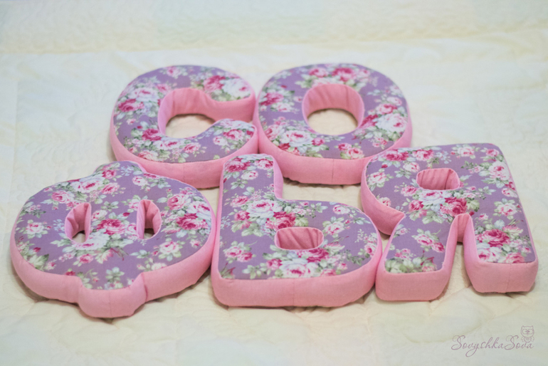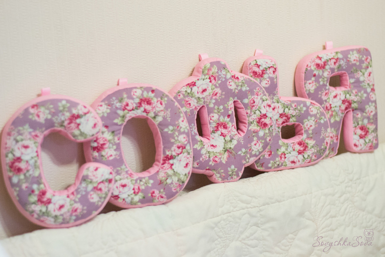 Я просто выбрала шрифт, из имеющихся на компьютере, и распечатала буквы нужного мне размера. Только уголки скруглила, когда выкраивала из ткани. Можно сразу на бумаге нарисовать "округлые" буквы. Себе еще не шила такие буквы, но моей мартышке они нравятся. Пока шью кому-нибудь на заказ, так и норовит утащить поиграть))