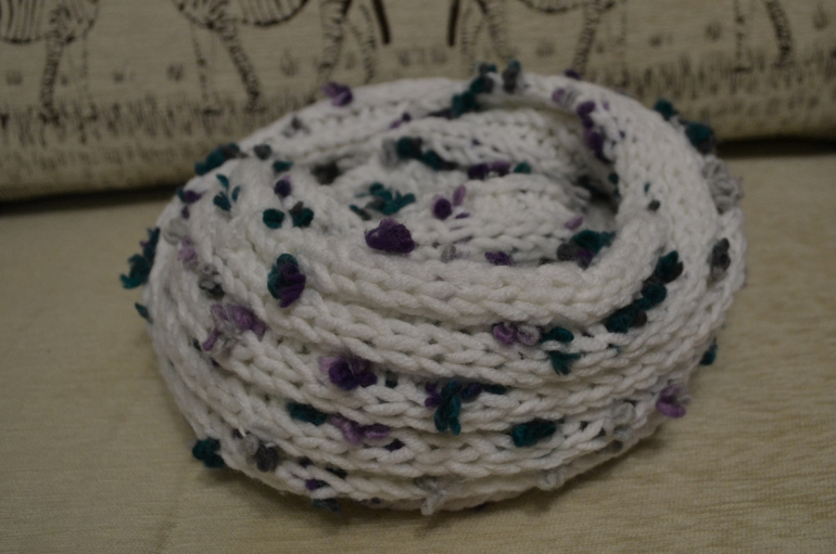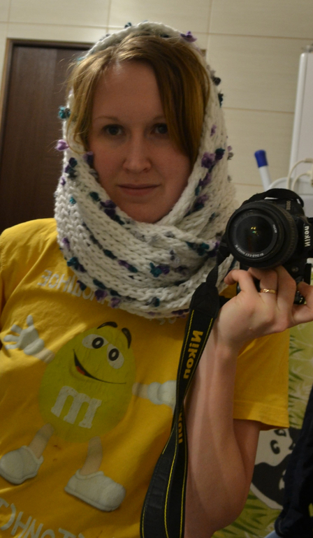 Зима подходит к концу, и как всегда вовремя я решила связать себе снуд (пряжу подарил муж на 14-е февраля))). Пряжу взяла Ализе фловер, спицы 10. Связала обычной резинкой 2*2. Единственное что немного расстроило что в 3-м моточке один цветок был не пришит (см. фото ниже)