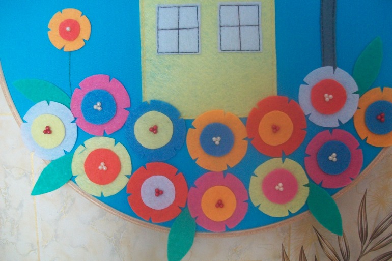 ФетрУже давно увидела идею картин в пяльцах и загорелась: всё выбирала сюжет, искала нужные пяльцы, долго тянула, и вот наконец я это сделала!