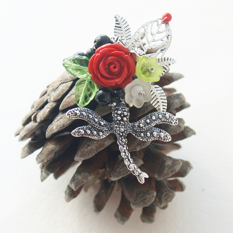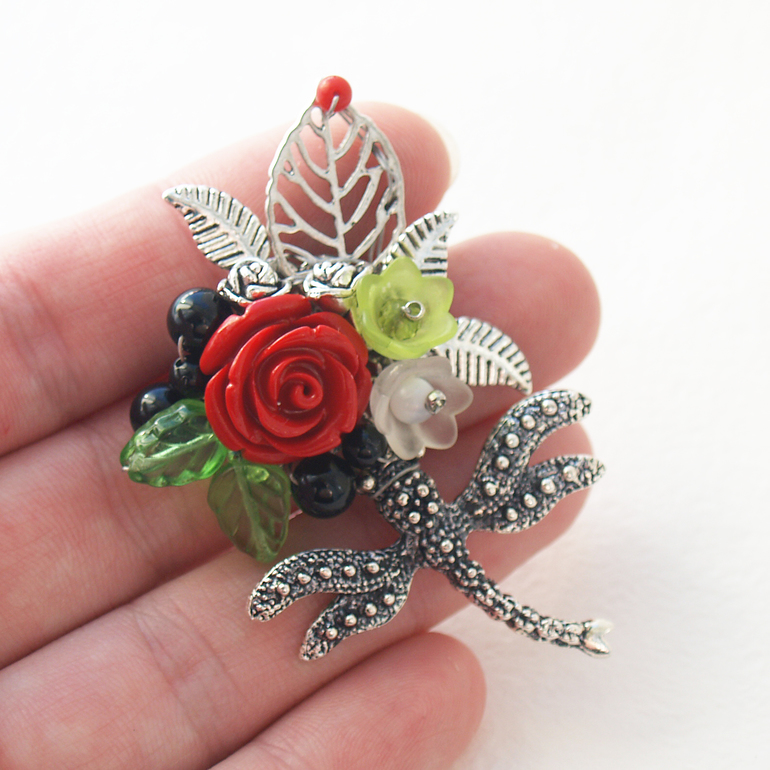 Бижутерия для слингомам. Слингобусы. Грызунки.Эффектная и очень стильная брошь с красавицей-стрекзой.