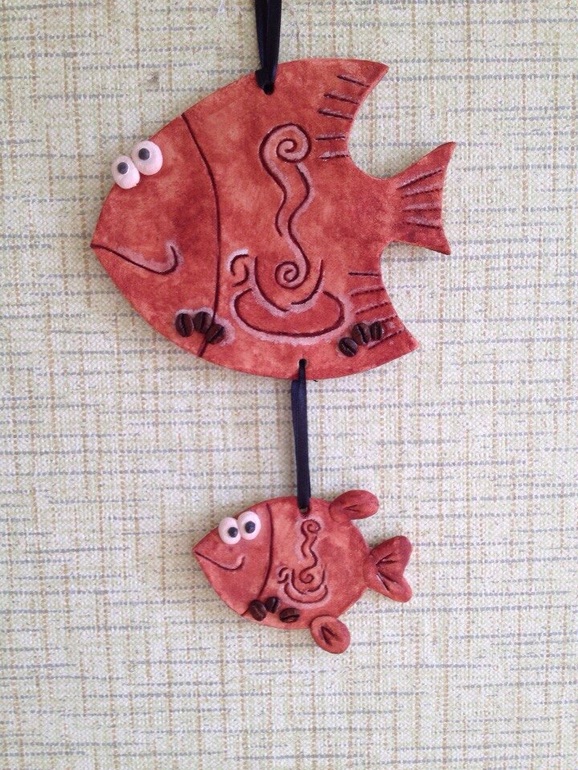 Солёное тесто (ТОЛЬКО ГОТОВЫЕ РАБОТЫ)Взяла идейку у вас, мастерицы! Рыбки получились, но с раскращиванием у меня все-таки плоховато,хотя этот процесс самый интересный:))