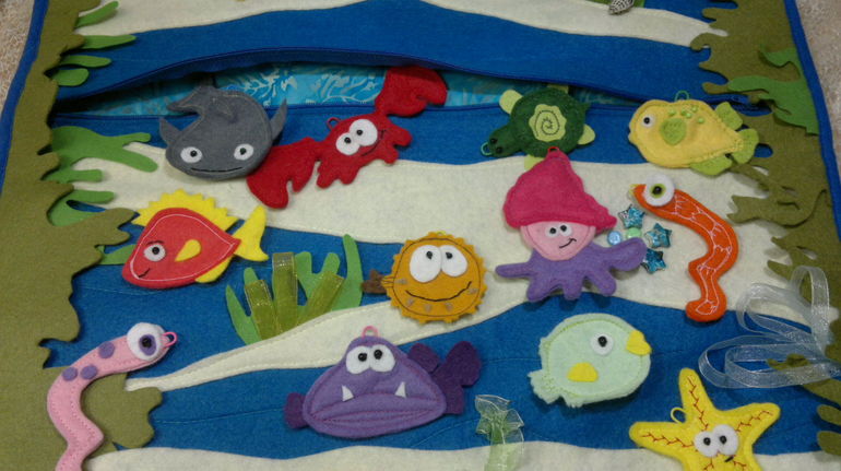 Помимо основной игры-рыбалка, с книжкой можно научится пользоваться некоторыми видами застежек (кнопки, молния), тем самым развивая мелкую моторику рук и навыки самообслуживания.