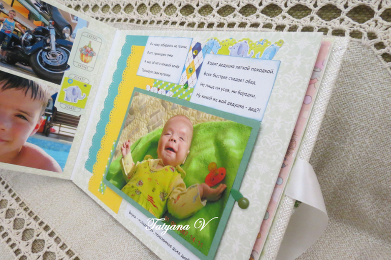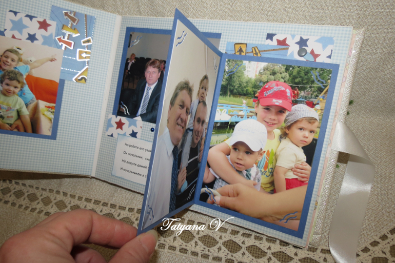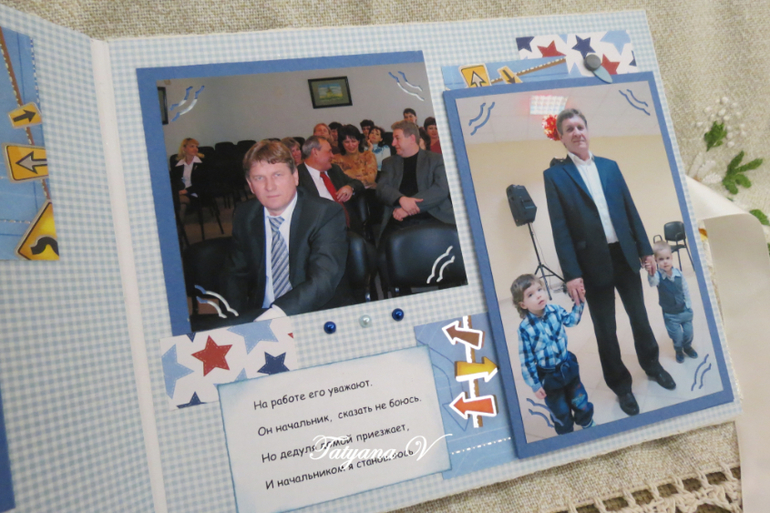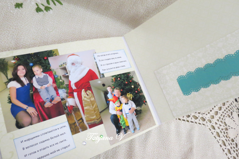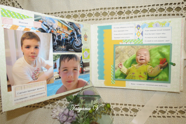 Но не буду о грустном. Альбом всего на 4 разворота. Размер 20*25 см. на 27 фотографий. Специально не делала никаких цветочков, и нашла очень симпатичные стихи про деда и афоризмы про внуков. Всех приглашаю к просмотру.