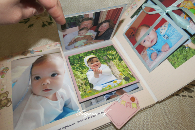 в конце альбома сделала большой карман для дополнительных фотографий.