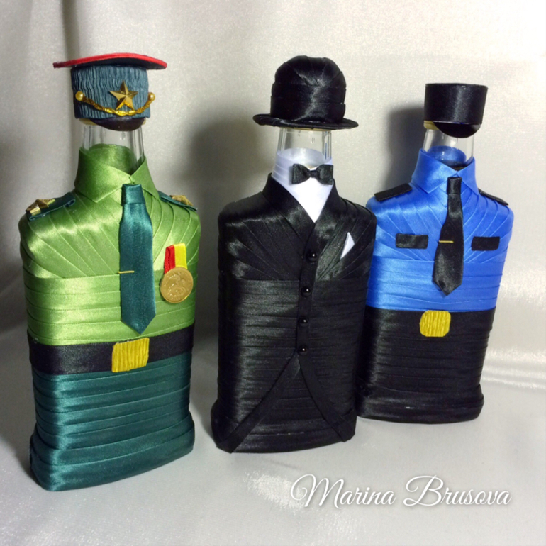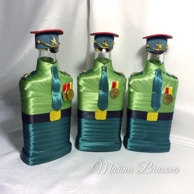 Замечательные работы! Погоны такие аккуратные! Бутылочки просто супер! А где ты звездочки берешь?