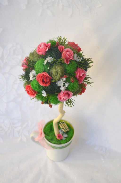 Можно и мне сказать, что я думаю. Много пересмотрела работ и моё мнение таково, что топиарии в кружке с ручкой как — то упрощают сам образ. Красивый горшок или ручки отколотить у кружки ,а потом задекорировать. Я так думаю. Работа ваша очень красивая и спасибо вам за эту красоту. Извините, если обидела.