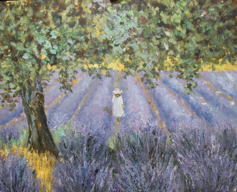 Девочка на лавандовом поле, масло, холст 50*40см. Тему лаванды продолжу, тем более я ее выбрала для кухни)